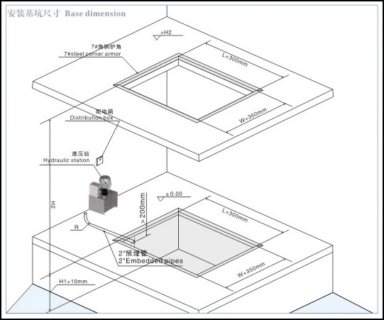 4.液壓站:液壓站的安裝位置由業(yè)主根據(jù)就近,方便操作的原則決定安裝位置。