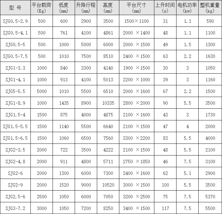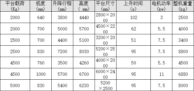 2.求時,可根據(jù)實際使用環(huán)境和操作要求,對升降臺的升高、承載量、平臺面積等進行組合,以便取得理想的使用效果。